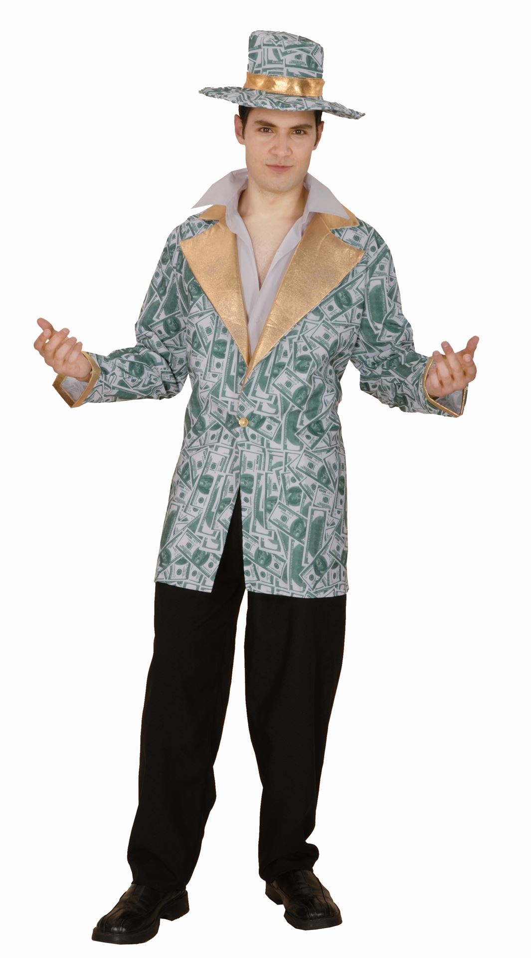 Kostim gospodina punog dolara uključuje sako i kapu.