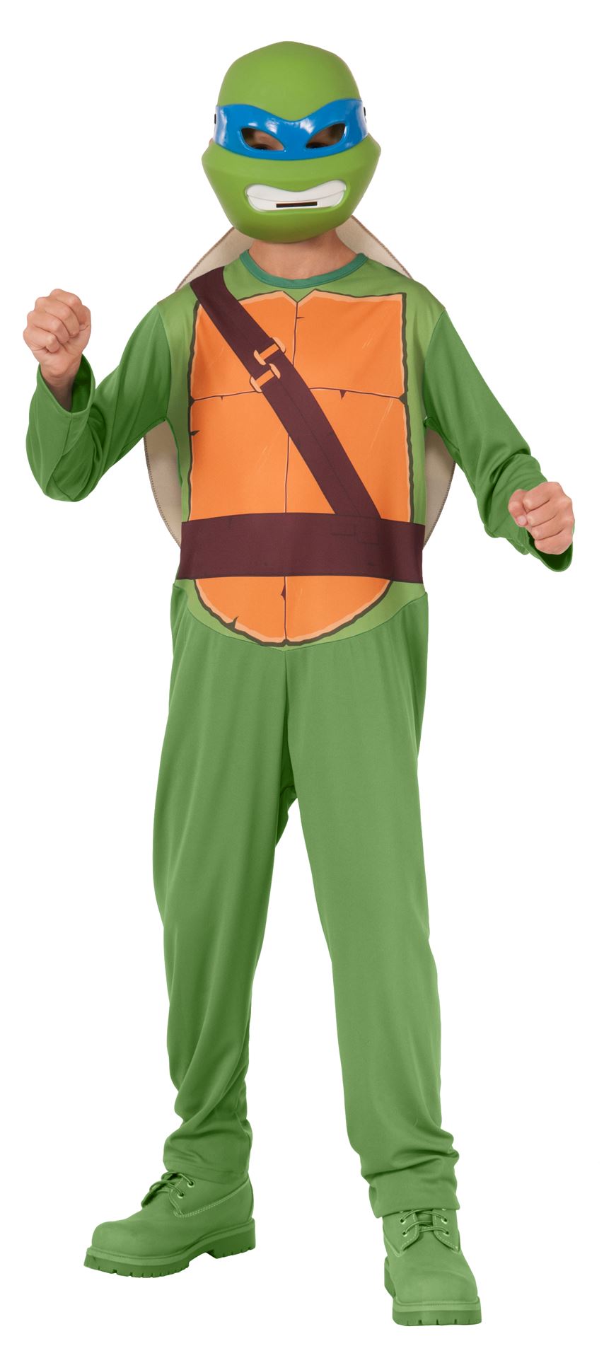 Kostim TMNT Leonardo dolazi u blister pakiranju, a uključuje zeleno-smeđe odijelo sa kornjačinim oklopom i maskom za oči. Kostim odgovara dobi od 8 do 10 godina, visina djeteta od 127 do 137 centimetara.